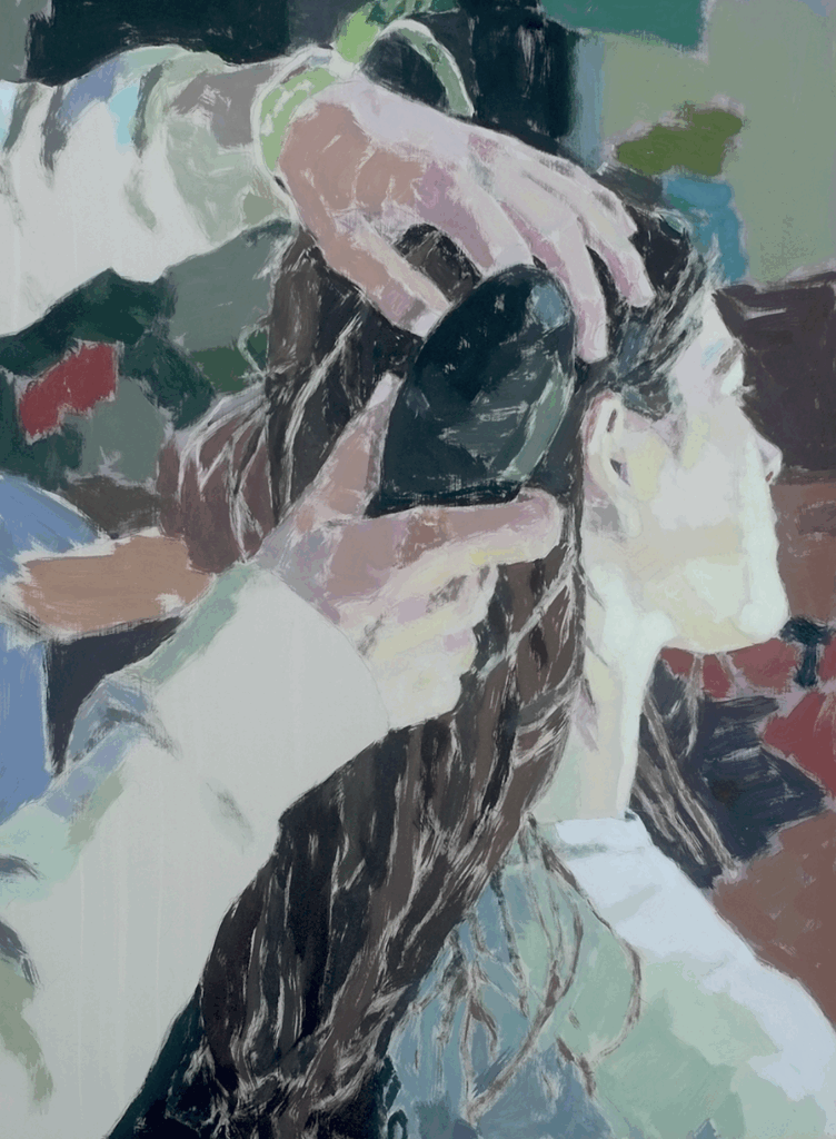 S’il pose sur les corps et les gestes un regard aiguisé par l’observation de modèles sur le vif, le passage à la peinture est surtout précédé par la réalisation ou la sélection de photographies et de vidéos. Filtrée par le regard du peintre, le mécanisme photographique ou digital puis par la peinture, la réalité contenue dans la ressemblance du modèle se délite et l’échec est attendu. Pourtant, dès le premier regard on comprend qu’il saisit dans l’instantanéité que permettent ces outils, toute la richesse des expressions, des mouvements et des cadrages qui font la particularité de ses productions.