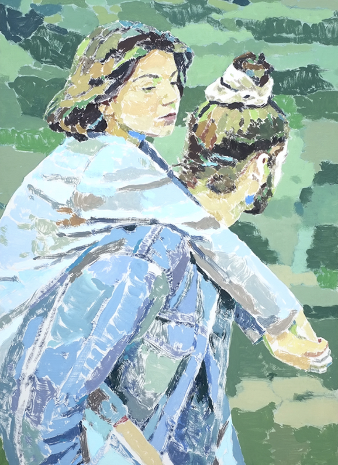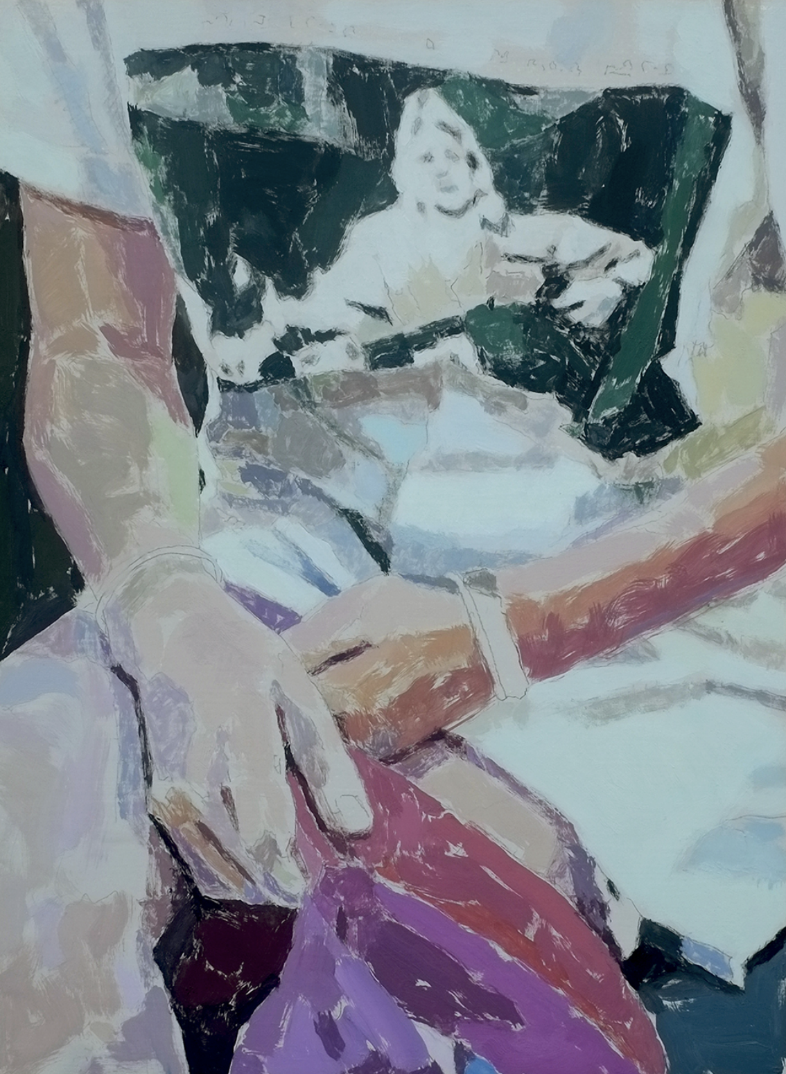 S’il pose sur les corps et les gestes un regard aiguisé par l’observation de modèles sur le vif, le passage à la peinture est surtout précédé par la réalisation ou la sélection de photographies et de vidéos. Filtrée par le regard du peintre, le mécanisme photographique ou digital puis par la peinture, la réalité contenue dans la ressemblance du modèle se délite et l’échec est attendu. Pourtant, dès le premier regard on comprend qu’il saisit dans l’instantanéité que permettent ces outils, toute la richesse des expressions, des mouvements et des cadrages qui font la particularité de ses productions.