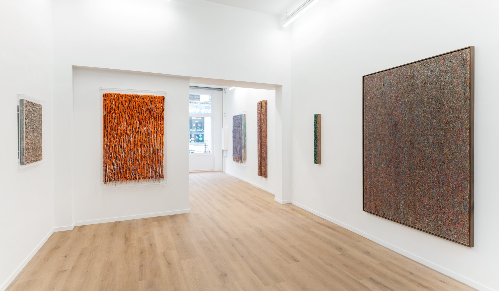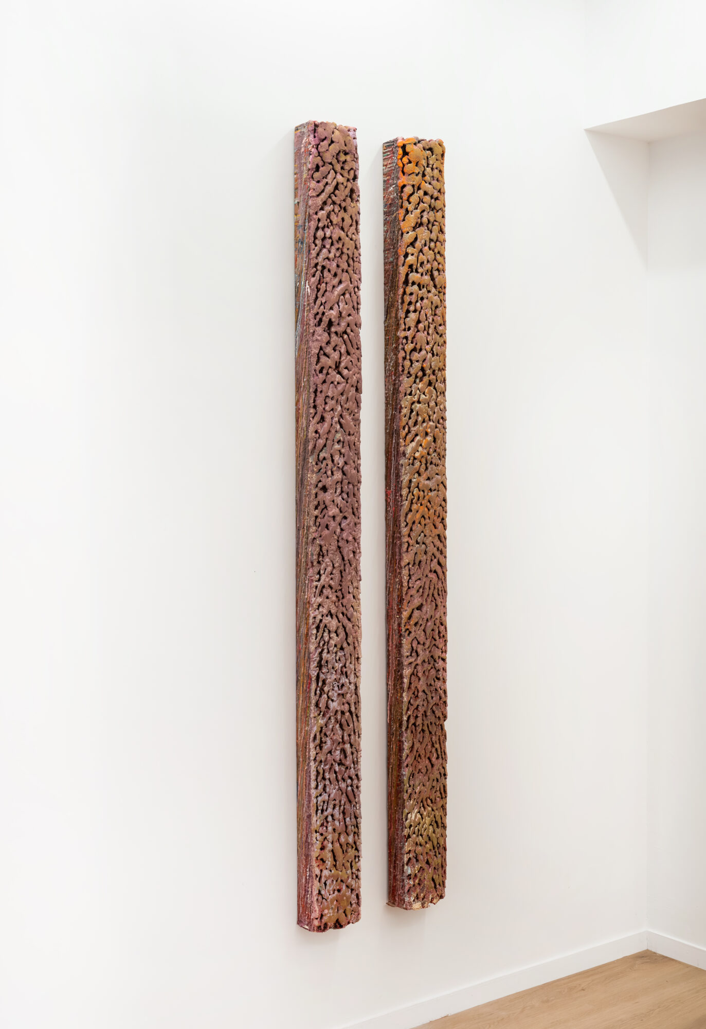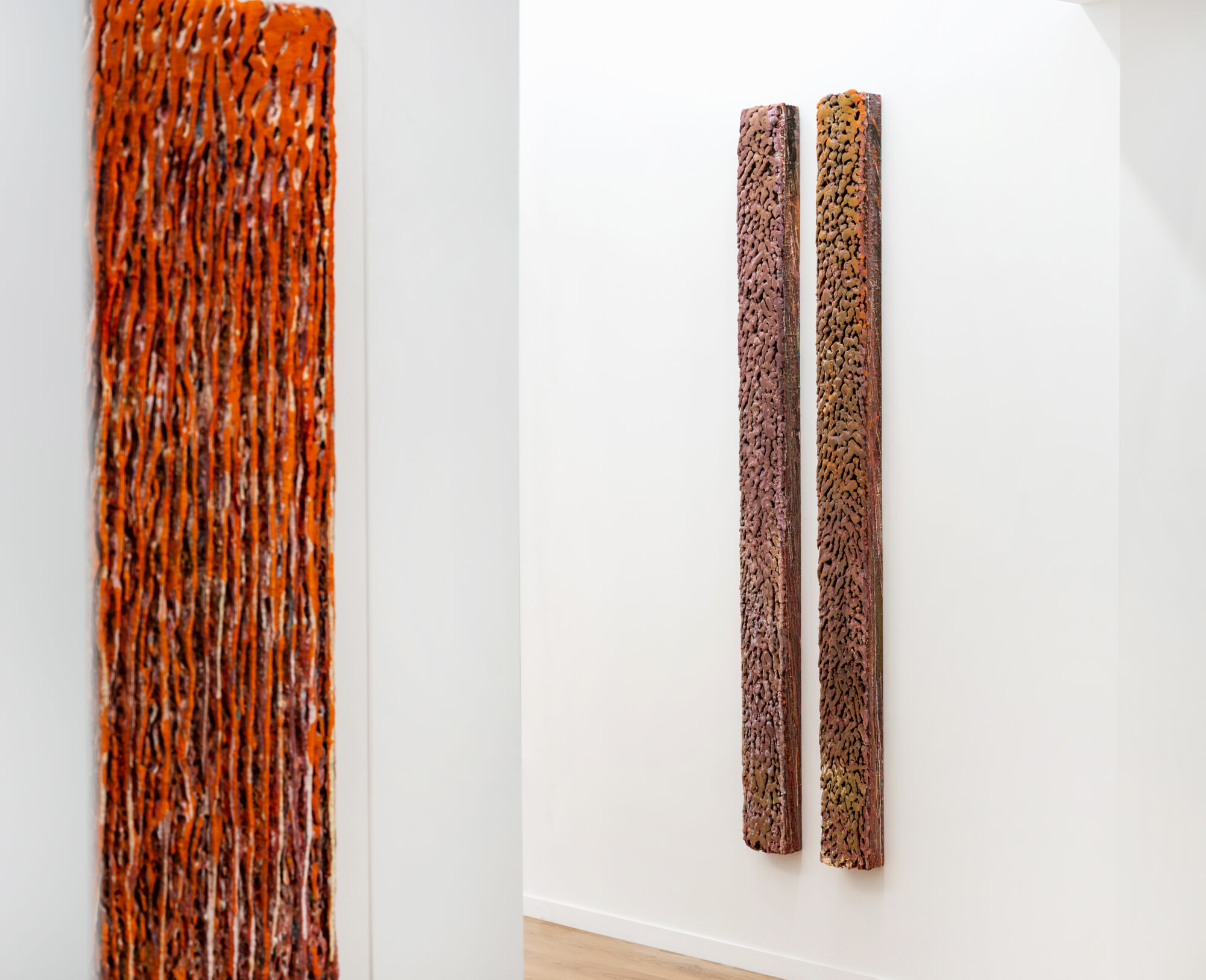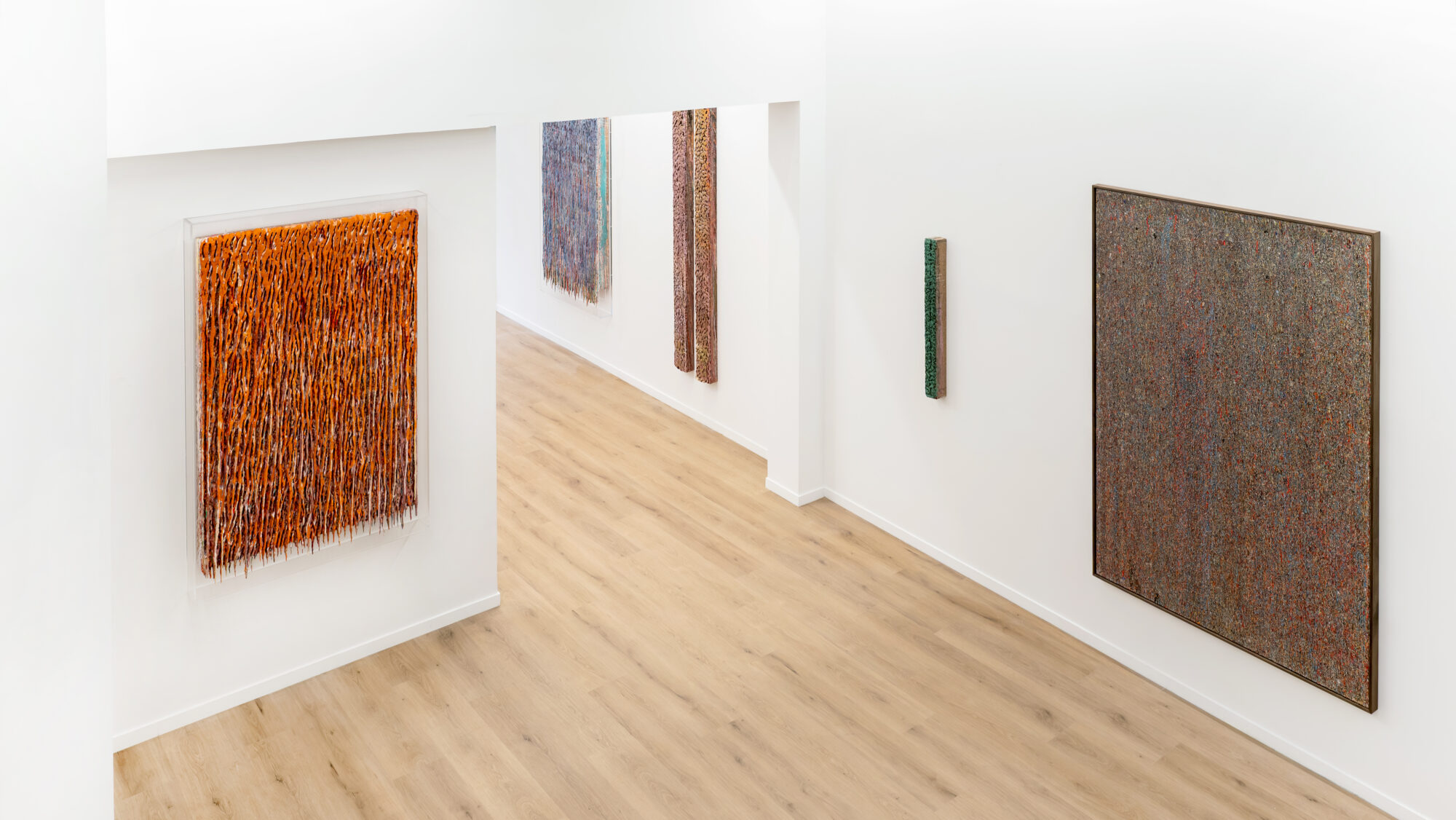 Dans ces verticales qui s’étirent, dans ces veines de couleur qui se mêlent, se lit une histoire qui se reforme à chaque instant, dont les cicatrices ne disparaissent jamais tout à fait, mais se transforment en fondation. Chaque toile devient une archive du passage, une matrice où le visible et le recouvert coexistent dans un même souffle.