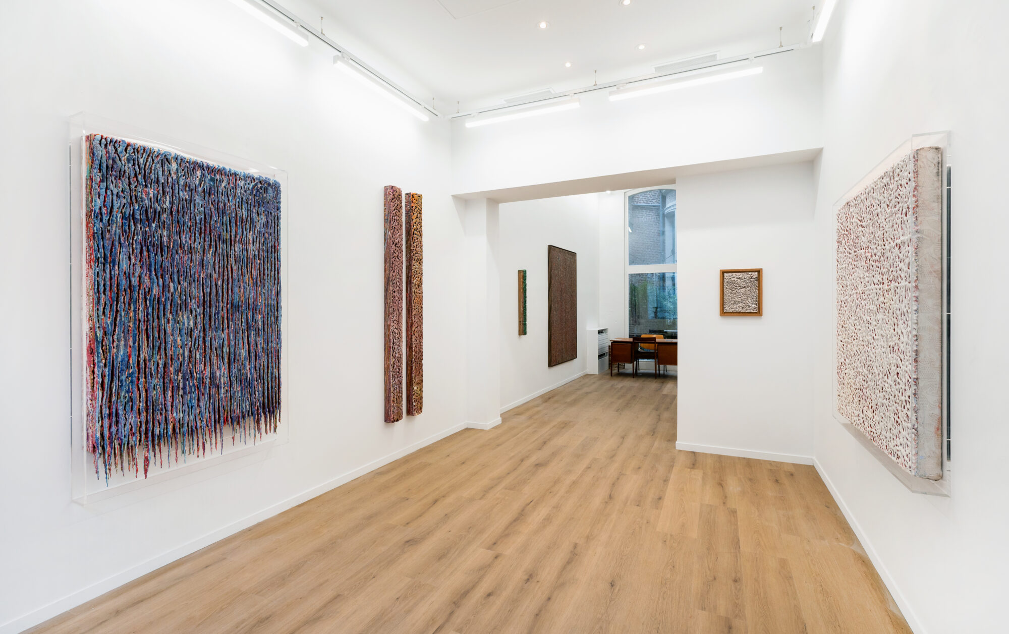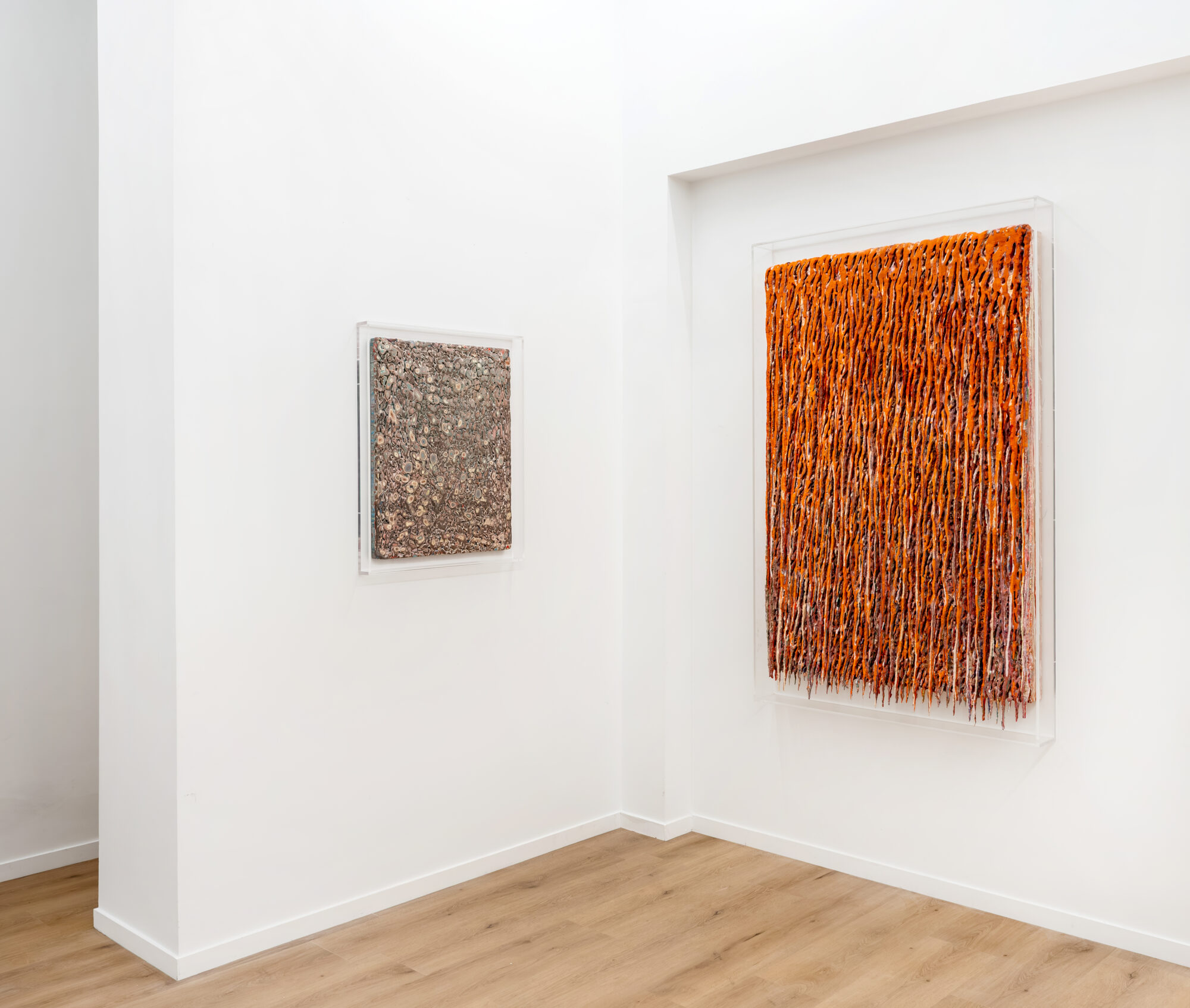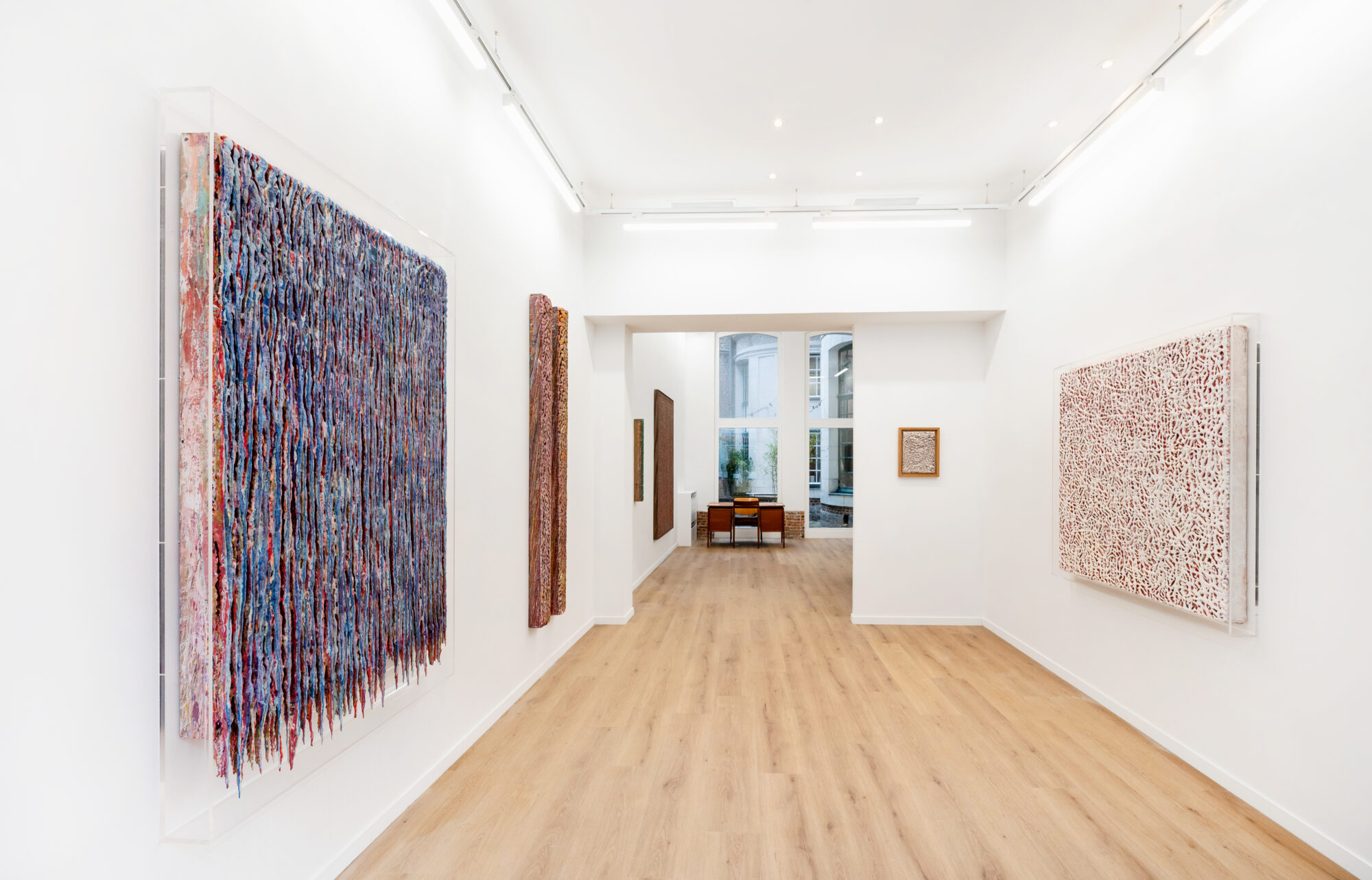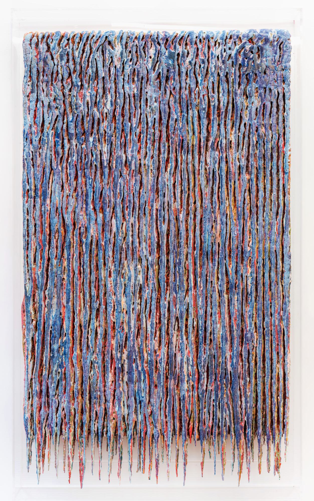 Dans ces verticales qui s’étirent, dans ces veines de couleur qui se mêlent, se lit une histoire qui se reforme à chaque instant, dont les cicatrices ne disparaissent jamais tout à fait, mais se transforment en fondation. Chaque toile devient une archive du passage, une matrice où le visible et le recouvert coexistent dans un même souffle.