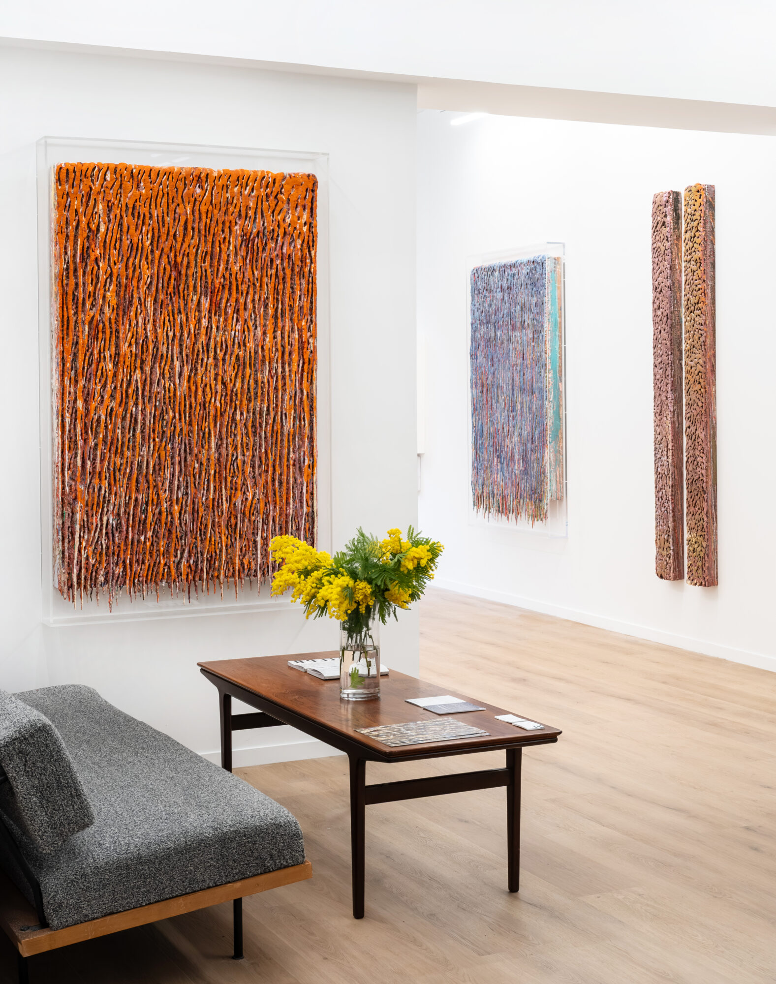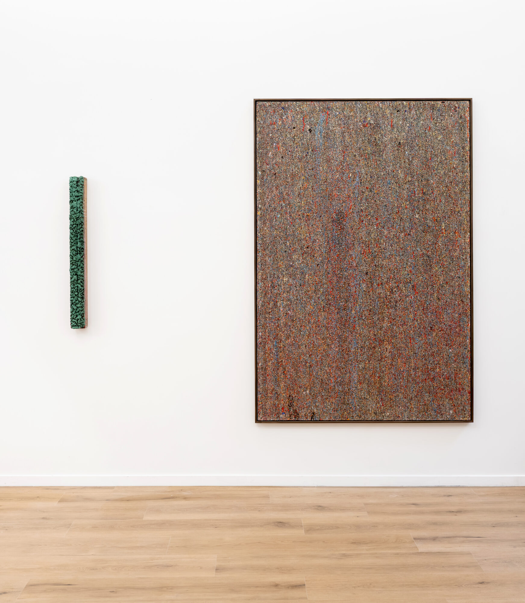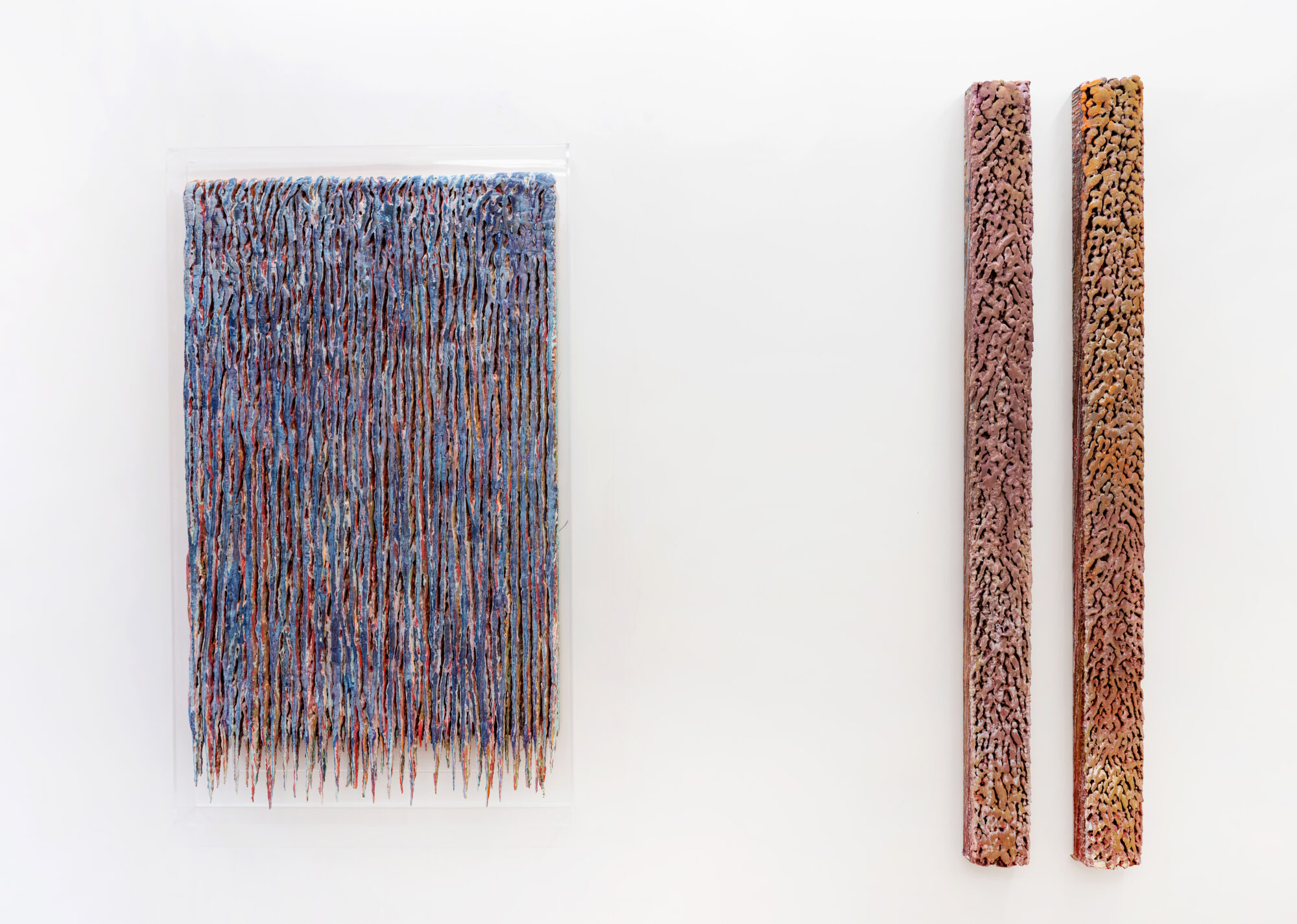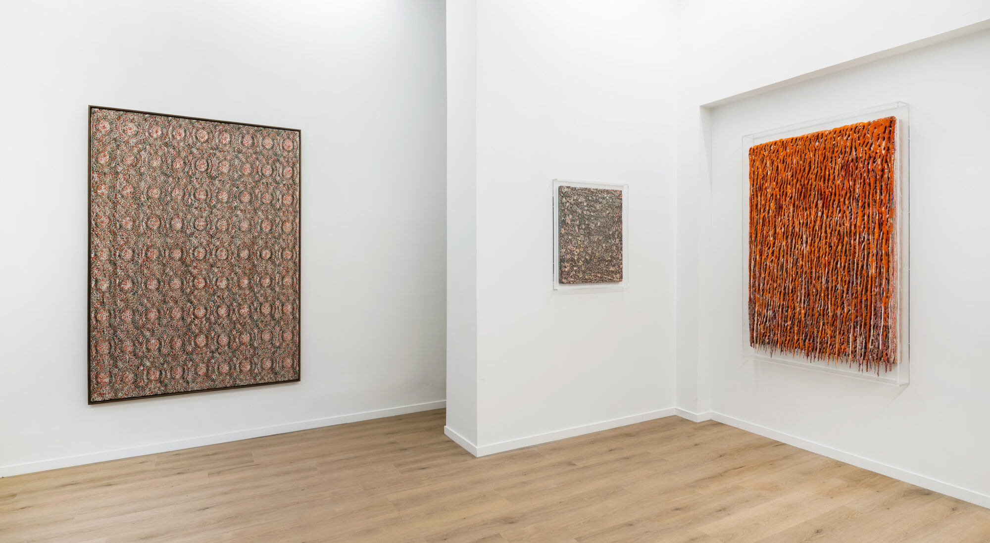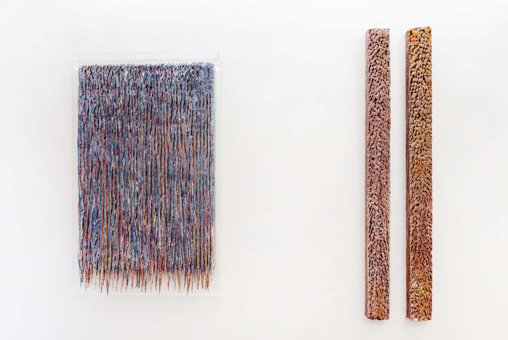 Dans ces verticales qui s’étirent, dans ces veines de couleur qui se mêlent, se lit une histoire qui se reforme à chaque instant, dont les cicatrices ne disparaissent jamais tout à fait, mais se transforment en fondation. Chaque toile devient une archive du passage, une matrice où le visible et le recouvert coexistent dans un même souffle.