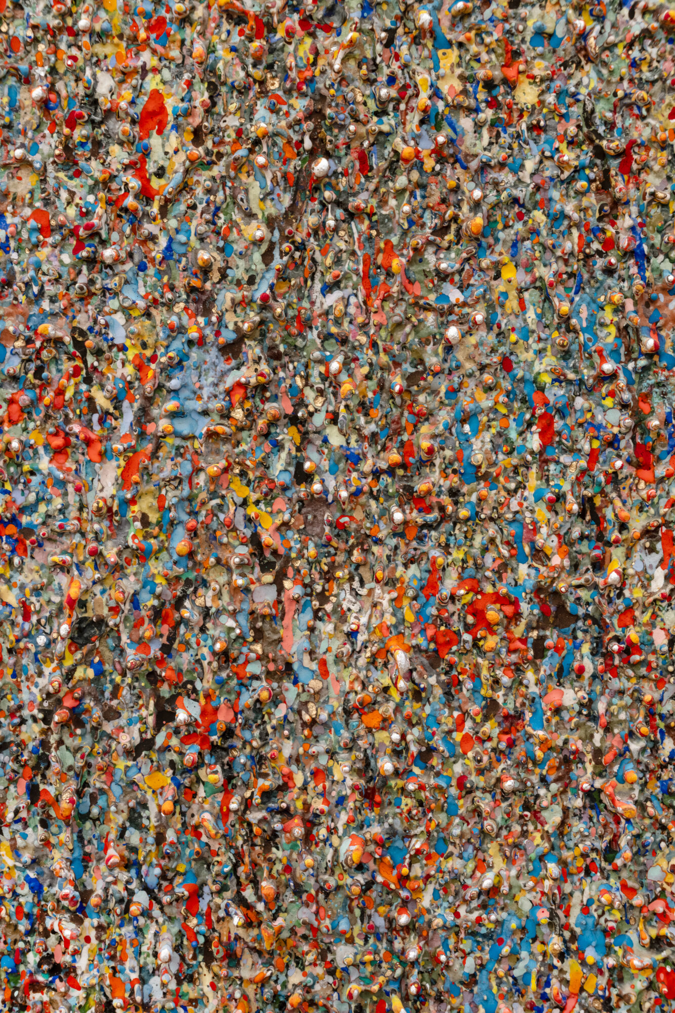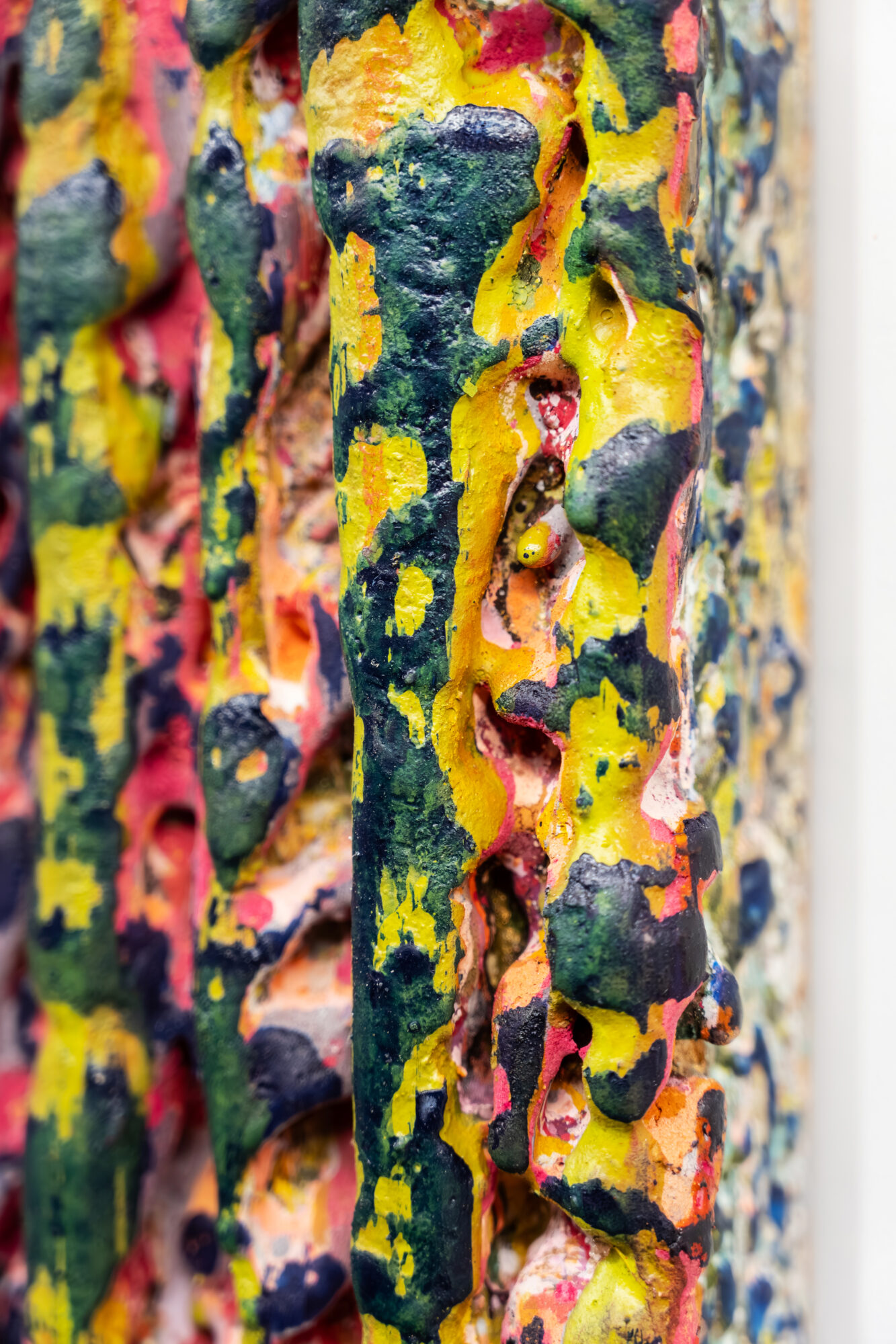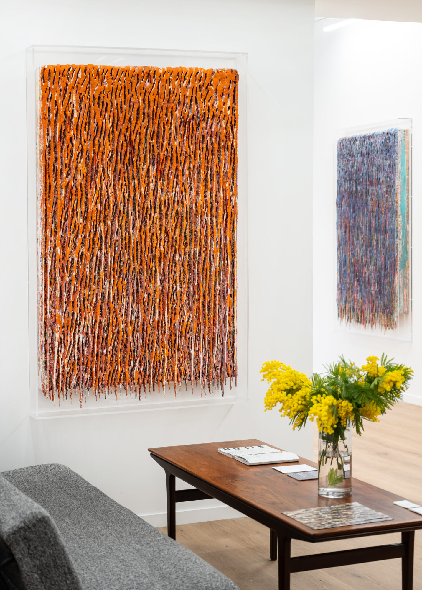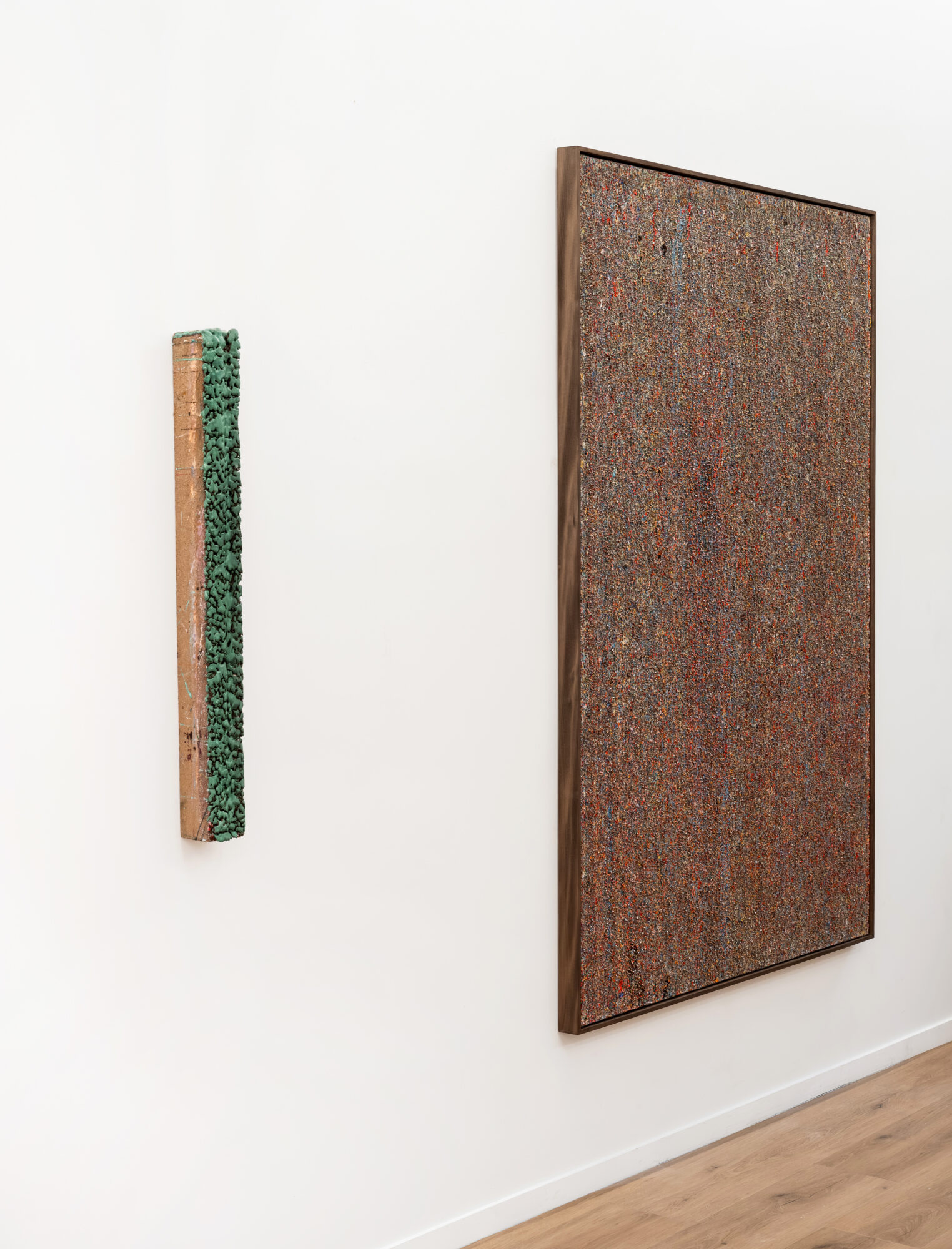 Dans ces verticales qui s’étirent, dans ces veines de couleur qui se mêlent, se lit une histoire qui se reforme à chaque instant, dont les cicatrices ne disparaissent jamais tout à fait, mais se transforment en fondation. Chaque toile devient une archive du passage, une matrice où le visible et le recouvert coexistent dans un même souffle.