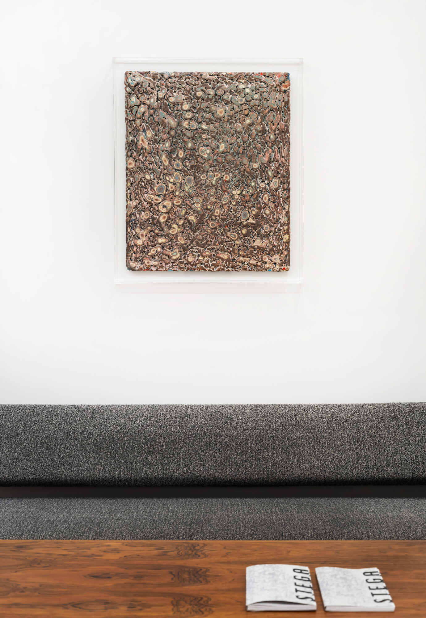 Les œuvres de Janusz Stega interrogent précisément cet entre-deux : ce qui est là, mais ne se montre plus ; ce qui a façonné la matière sans plus occuper le regard. Les pigments ruissellent comme des souvenirs qui se déplacent, glissent, s’effacent partiellement, laissant derrière eux une mémoire de leur propre disparition.