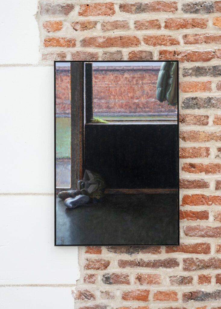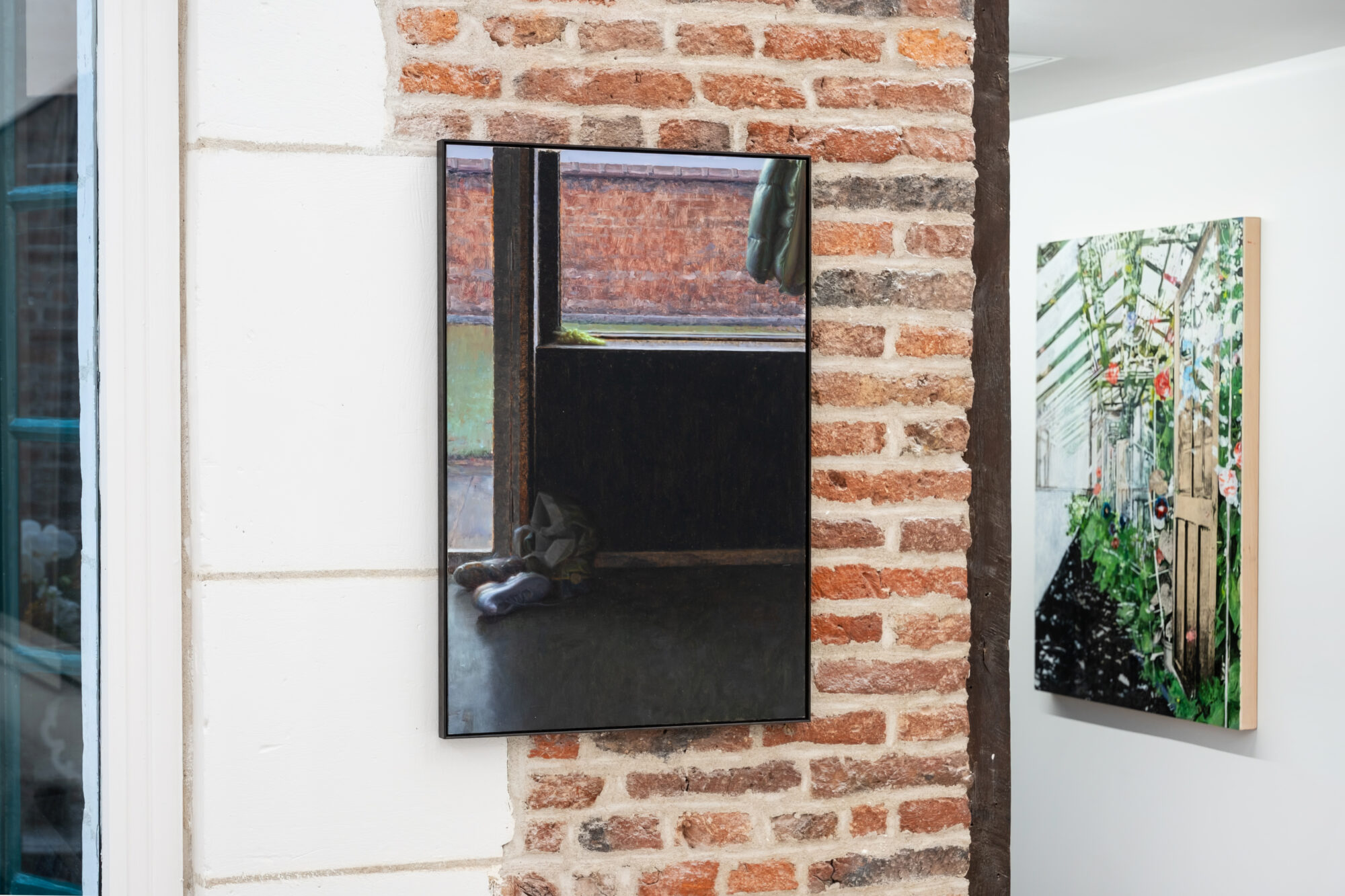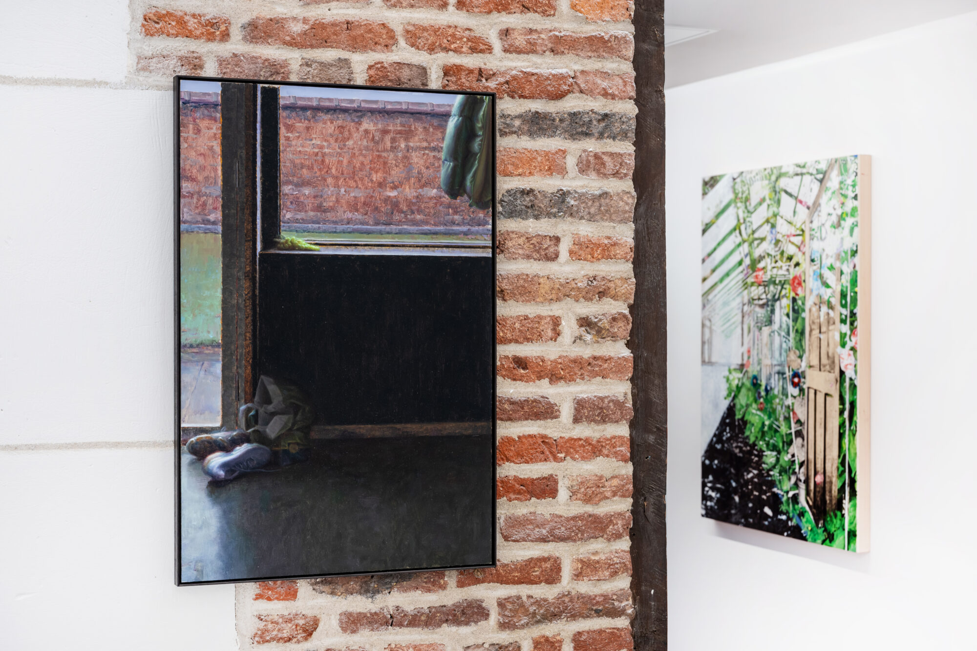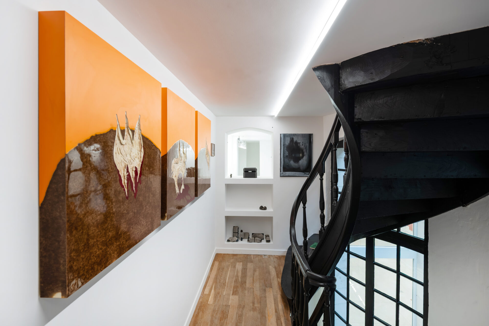 La galerie elle-même en incarne la métaphore. Deux fenêtres, réelles, s’ouvrent sur une cour intérieure. Mais ce n’est pas le dehors qui est donné à voir, c’est le dedans. L’espace d’exposition devient un seuil inversé, une chambre obscure où l’on regarde à travers les regards. L’œuvre ne se donne pas comme une image plane, mais comme une stratification de plans, un feuilleté de gestes, de matières. Comme le disait Georges Didi-Huberman, « voir, c’est toujours voir à travers. »