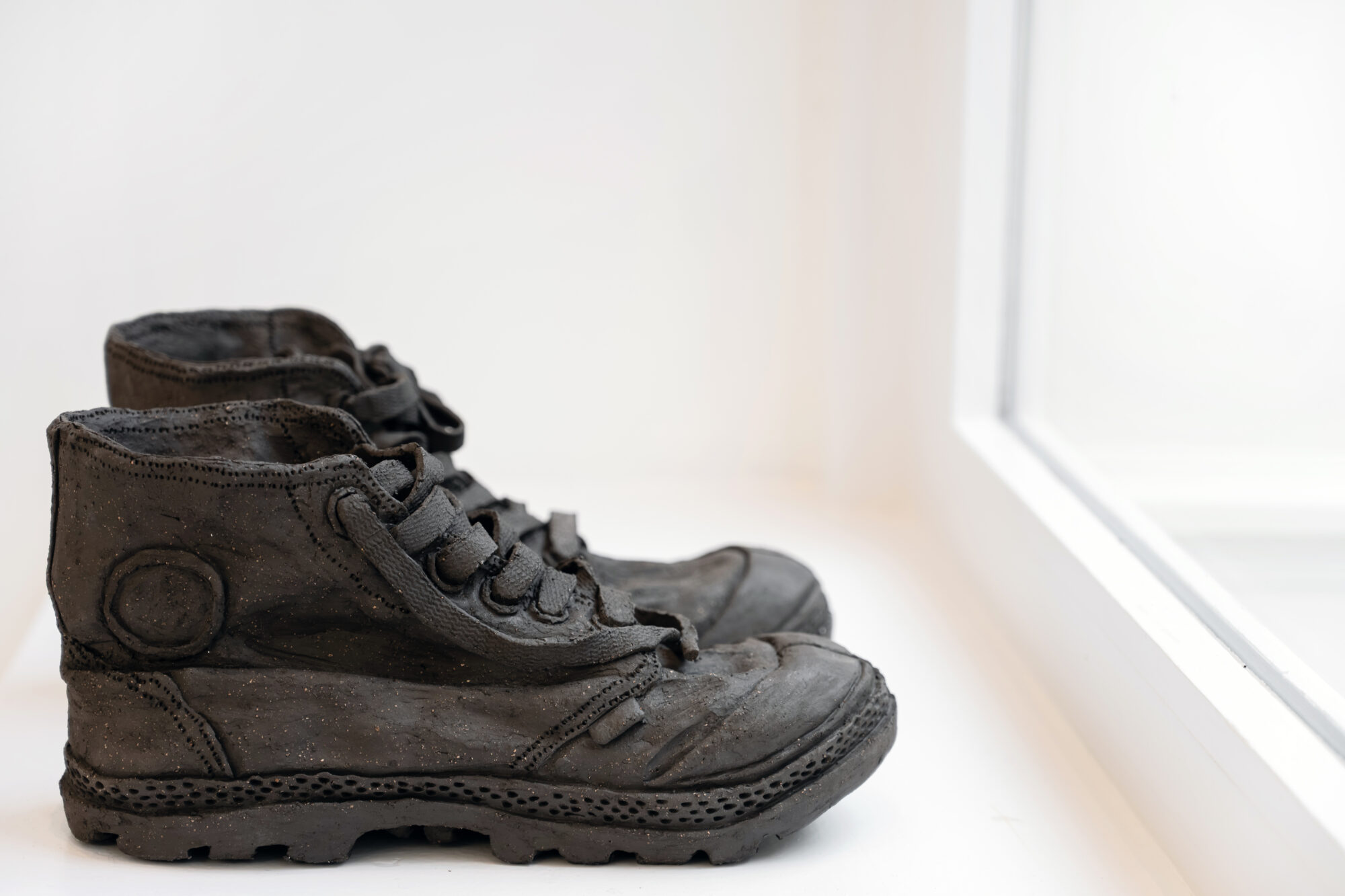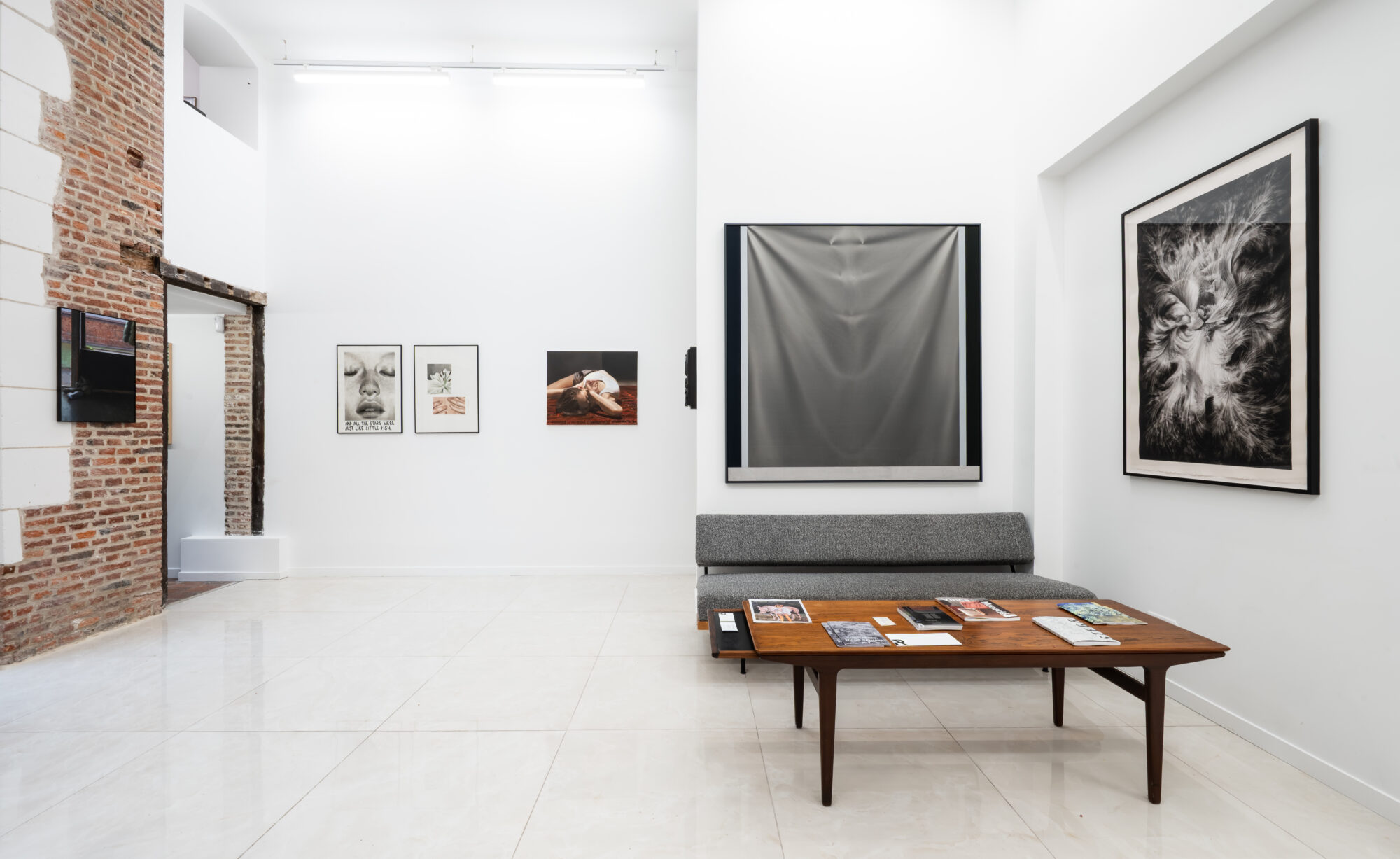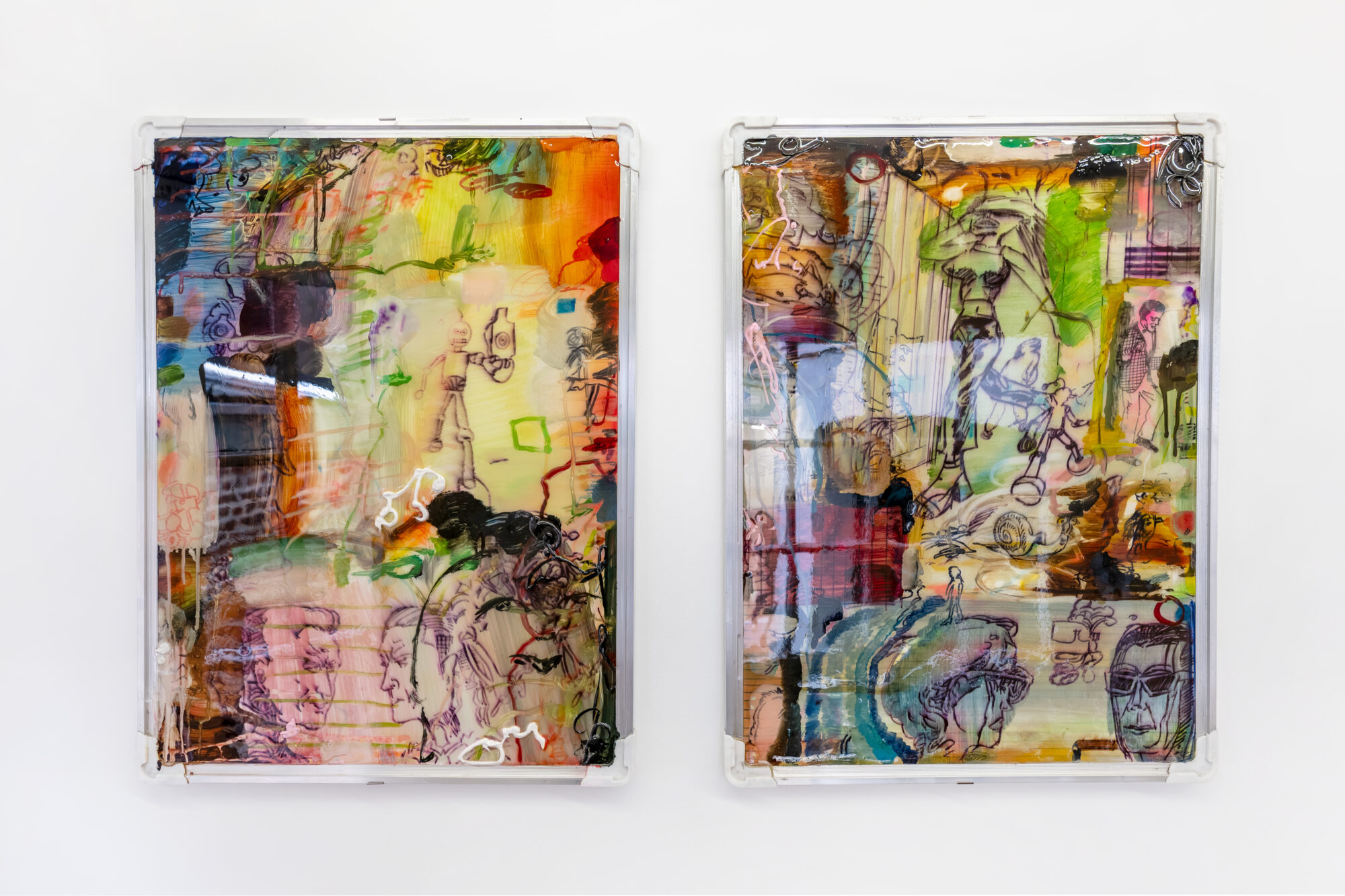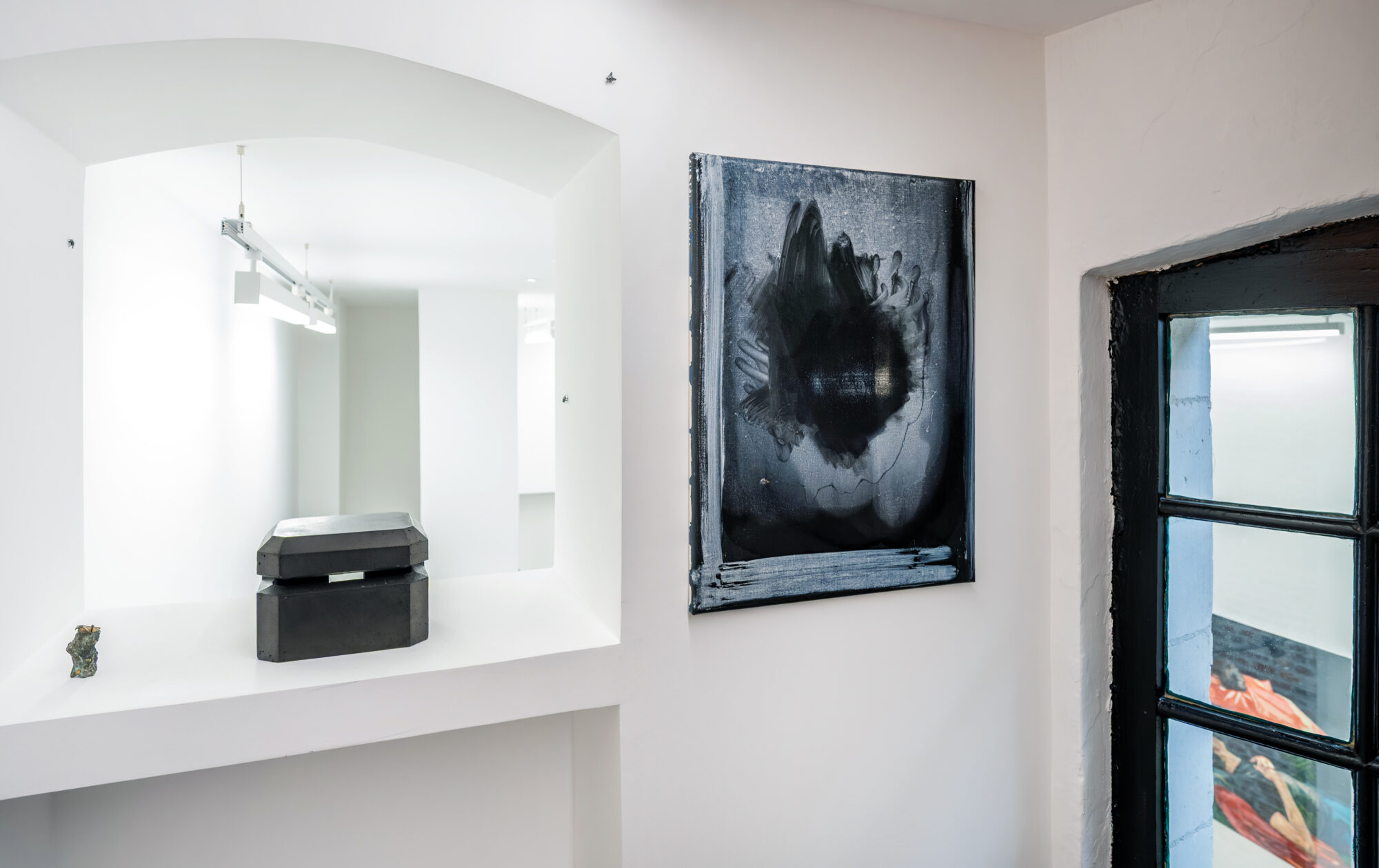 La galerie elle-même en incarne la métaphore. Deux fenêtres, réelles, s’ouvrent sur une cour intérieure. Mais ce n’est pas le dehors qui est donné à voir, c’est le dedans. L’espace d’exposition devient un seuil inversé, une chambre obscure où l’on regarde à travers les regards. L’œuvre ne se donne pas comme une image plane, mais comme une stratification de plans, un feuilleté de gestes, de matières. Comme le disait Georges Didi-Huberman, « voir, c’est toujours voir à travers. »
